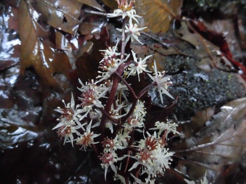 雨上がりのオウレンの雫