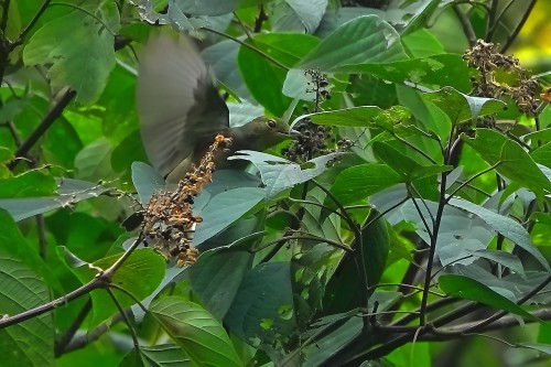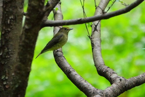 羽搏くキビタキの雌