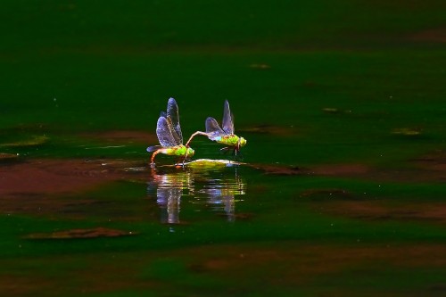 映り込む緑で連結産卵