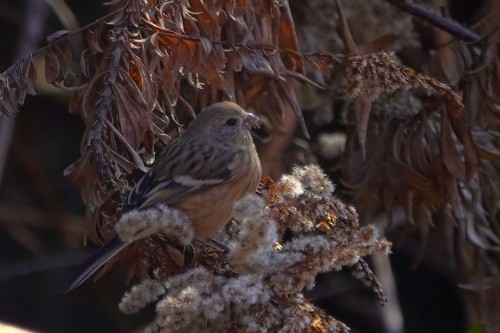 葦原にベニマシコの雌
