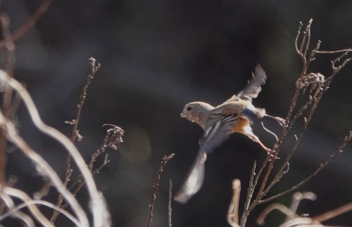 飛立つベニマシコ雌