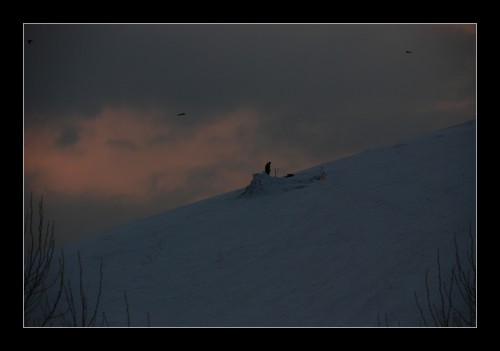 夕焼けを見る人