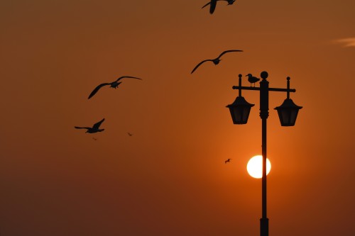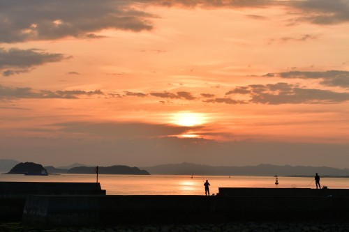 夕日の波止場