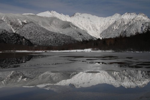 冬の上高地・大正池から穂高連峰