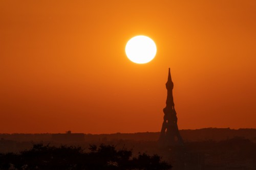 沈む太陽、PLの塔を照らす
