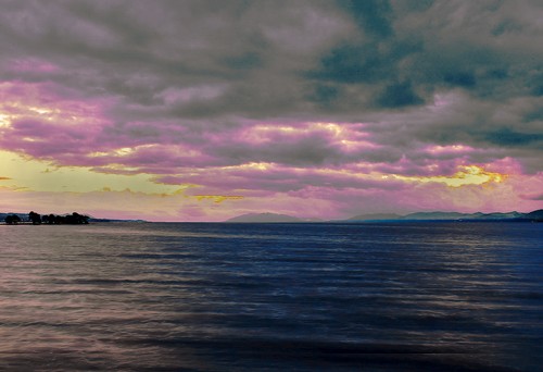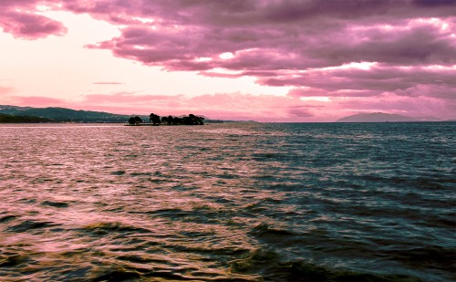 夕日照り返す