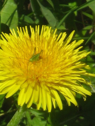 たんぽぽと昆虫(バッタ)