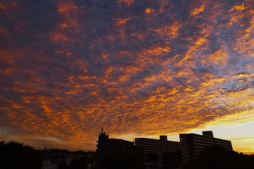 団地を包む朝焼