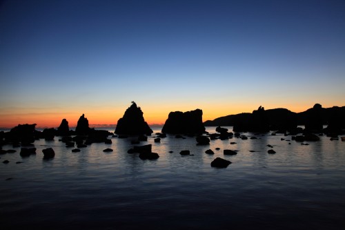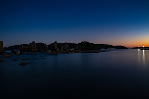 夕闇迫る橋杭岩