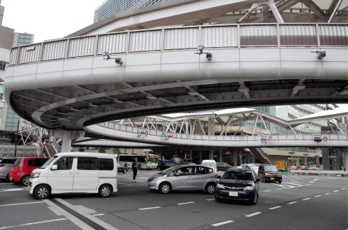 都会の大きな曲線の下