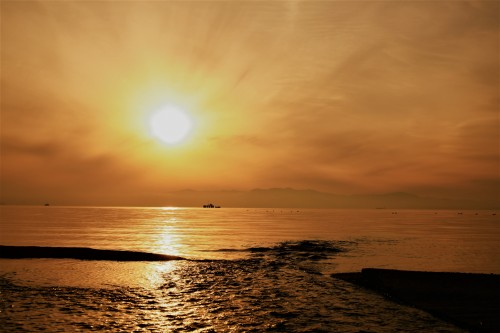 河口の夕陽(縦)