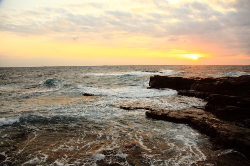 波打ち際の夕日
