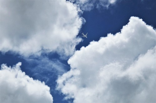 積雲間のJAL機