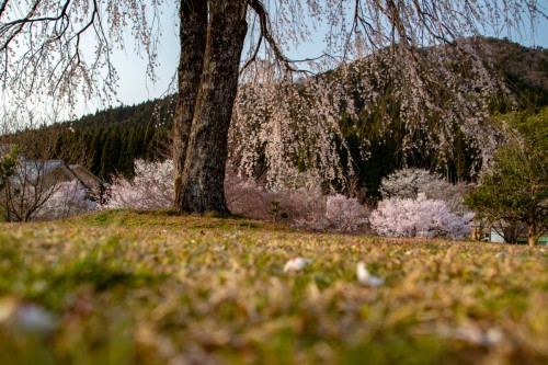 黄昏時の桜