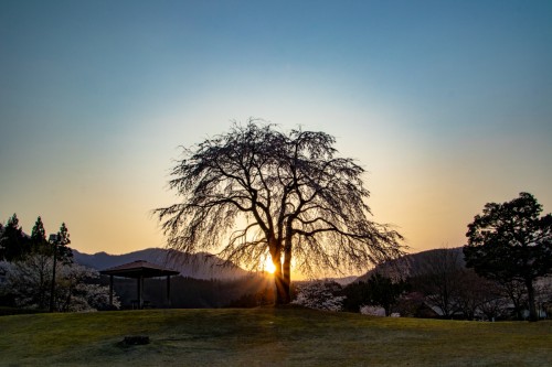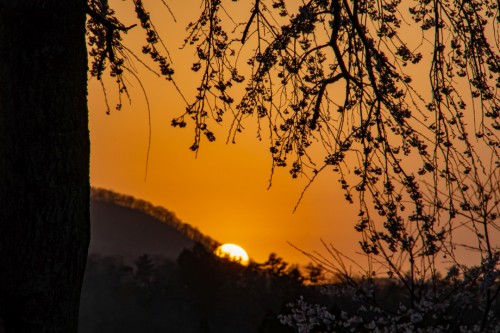 夕日と枝垂れ桜
