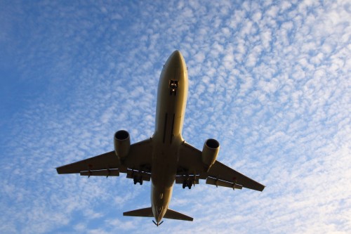 うろこ雲に飛行機